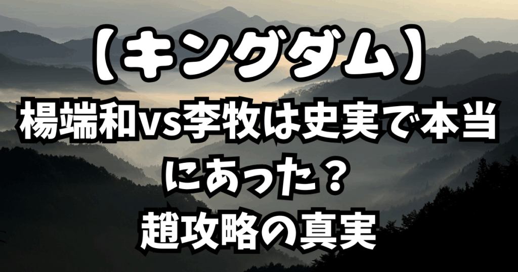 キングダムの中でも屈指の人気を誇る戦が、秦国と趙国の壮絶な戦いです。 その中心にいるのが山の王・楊端和と、知略の天才・李牧。 ふたりが戦場で相まみえる展開は、物語の中でも緊張感が高く、多くの読者が息をのむ場面だと思います。 では、実際の史実... -