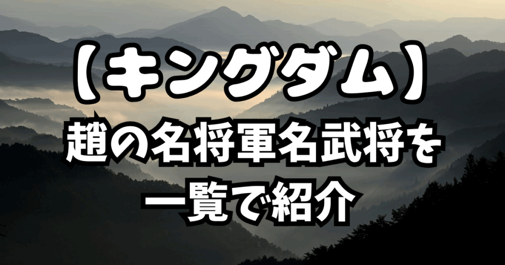 漫画「キングダム」を読むと、秦の将軍ばかりに目が行きがちですが、趙の将軍たちも物語の核心を担っています。 邯鄲という国の都を守り続け、秦の侵攻を防ぎながら自国の存亡を背負った武将たちは、ただの敵役では収まらない深みを持っています。 登場す... -